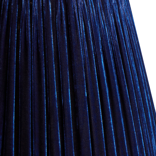 Dive into the deep end of decadence with this royal blue number in glorious silk velvet. With perfectly pleated folds and a rich, inky tone that’s somewhere between midnight and majesty, it’s the kind of shade that does all the talking - even when the lamp’s off. Decadently lined in gold silk (as though you needed more…!)