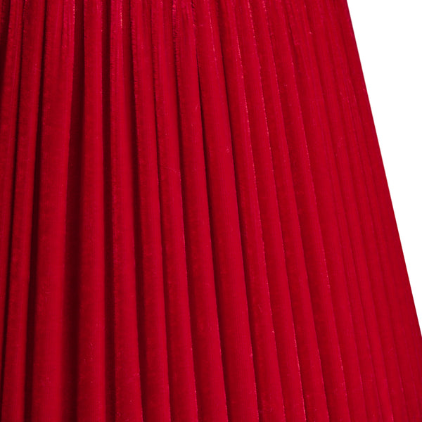 This fabulously rich scarlet lampshade is pure theatre in silk velvet - luxurious, velvety pleats that catch the light like a stage curtain just before the show begins. It's bold, it's sumptuous, and it's definitely not shy. Decadently lined in gold silk (as though you needed more…!)