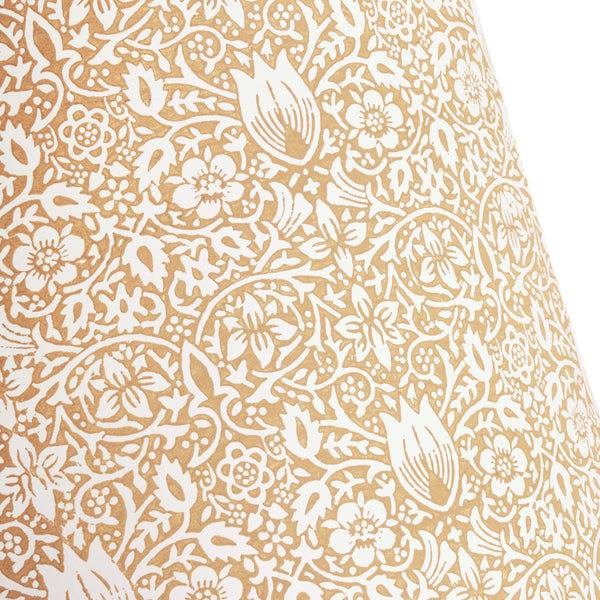 William Morris, a close friend of master engraver Emery Walker, crafted the lively 'Borage' floral pattern in 1883, drawing inspiration from nature. Beloved by bees, this pattern is a lively, spirited floral design with multiple axes of symmetry, creating a captivating focal point in any room. We've carefully block printed 'Borage' onto lamp shades, capturing Morris' original technique's timeless charm and unique variations, as once seen in Walker's Hammersmith home—a beautiful blend of history and craftsmanship.