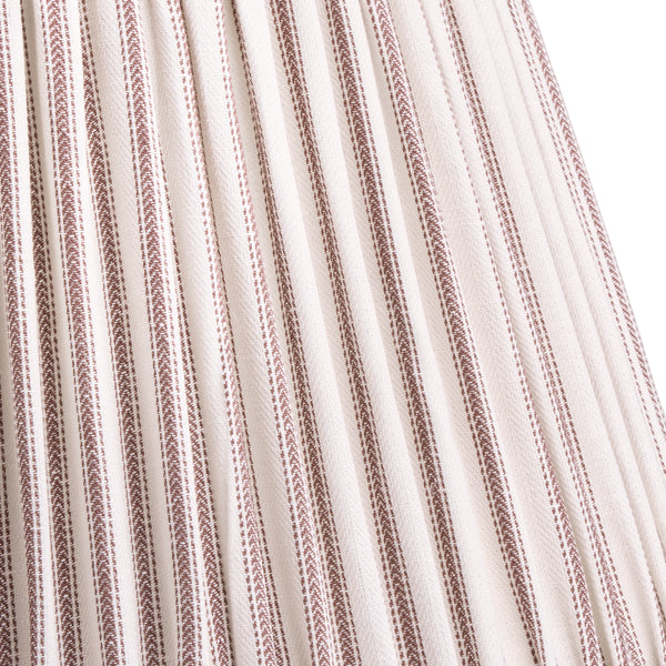 The Rust Ticking Linen lamp shade features classic stripes and dainty ruffles, blending timeless charm with a cosy, rustic warmth.