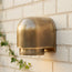 Rounded and solid like a ship's funnel. Big, brassy* and endlessly robust...one of the great down lighters. * as in pure, solid, chunky, cast brass.