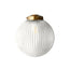 Simple really - a prismatic glass dome. The lovely, ribbed prismatic blown glass casts off a subtle dappled light across the room. A gallery is required to allow this espere to hang from pendant kits and wall fixtures (unless paired with a plumb flush mount fixture).