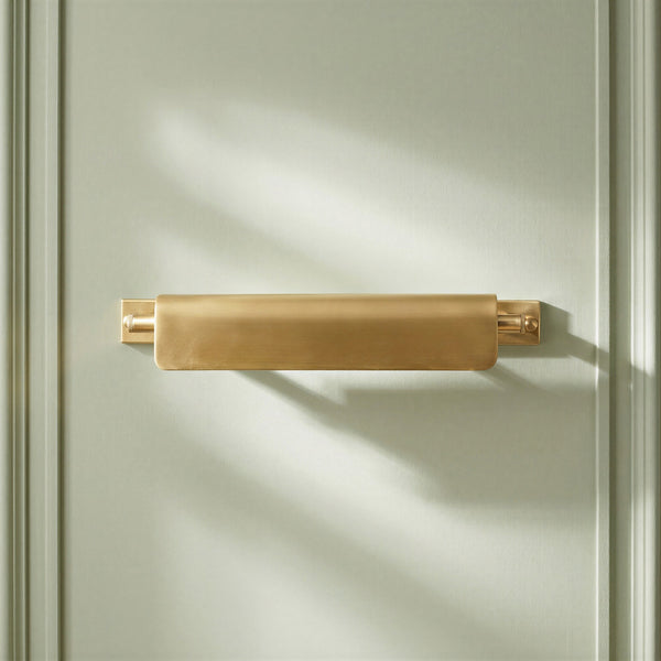 Like an old library light the hood is supported at either end and can be directed as suits. A classic picture light in beautifully finished brass.